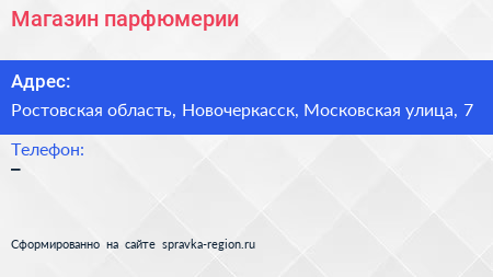 Магазин парфюмерии по адресу Ростовская область, Новочеркасск, Московская улица, 7 в дальнейшем Организация, размещена в следующих категориях: