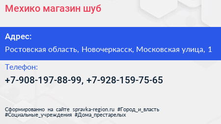 Мехико, магазин шуб по адресу Ростовская область, Новочеркасск, Московская улица, 1 в дальнейшем Организация, размещена в следующих категориях: