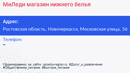 МиЛеди, магазин нижнего белья по адресу Ростовская область, Новочеркасск, Московская улица, 56 в дальнейшем Организация, размещена в следующих категориях: