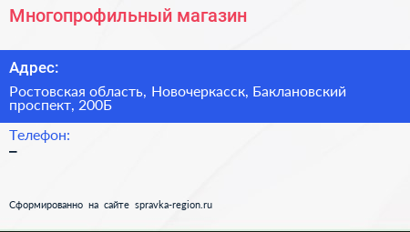 Многопрофильный магазин по адресу Ростовская область, Новочеркасск, Баклановский проспект, 200Б в дальнейшем Организация, размещена в следующих категориях: