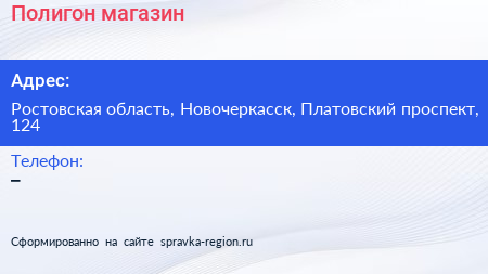Полигон, магазин по адресу Ростовская область, Новочеркасск, Платовский проспект, 124 в дальнейшем Организация, размещена в следующих категориях: