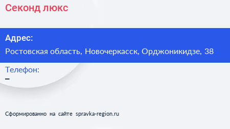 Секонд люкс по адресу Ростовская область, Новочеркасск, Орджоникидзе, 38 в дальнейшем Организация, размещена в следующих категориях: