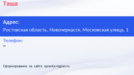 Таша по адресу Ростовская область, Новочеркасск, Московская улица, 1 в дальнейшем Организация, размещена в следующих категориях: