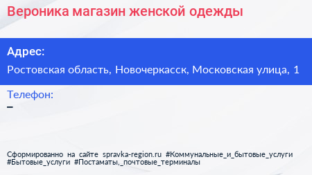 Вероника, магазин женской одежды по адресу Ростовская область, Новочеркасск, Московская улица, 1 в дальнейшем Организация, размещена в следующих категориях:
