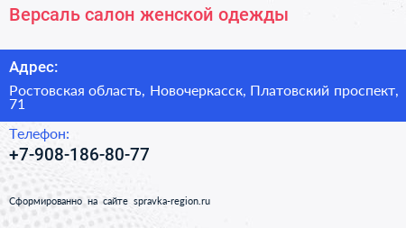 Версаль, салон женской одежды по адресу Ростовская область, Новочеркасск, Платовский проспект, 71 в дальнейшем Организация, размещена в следующих категориях: