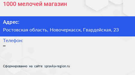 1000 мелочей, магазин по адресу Ростовская область, Новочеркасск, Гвардейская, 23 в дальнейшем Организация, размещена в следующих категориях: