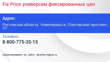 Fix Price, универсам фиксированных цен по адресу Ростовская область, Новочеркасск, Платовский проспект, 77 в дальнейшем Организация, размещена в следующих категориях: