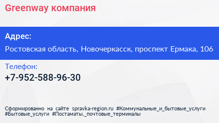 Greenway, компания по адресу Ростовская область, Новочеркасск, проспект Ермака, 106 в дальнейшем Организация, размещена в следующих категориях: