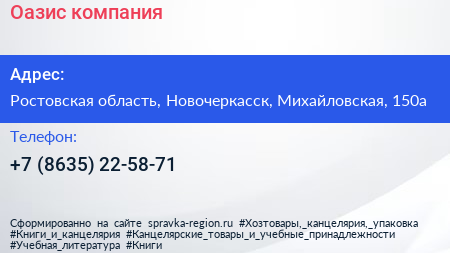 Оазис, компания по адресу Ростовская область, Новочеркасск, Михайловская, 150а в дальнейшем Организация, размещена в следующих категориях: