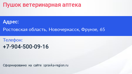 Пушок, ветеринарная аптека по адресу Ростовская область, Новочеркасск, Фрунзе, 65 в дальнейшем Организация, размещена в следующих категориях:
