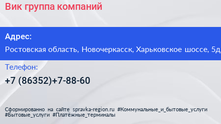 Вик, группа компаний по адресу Ростовская область, Новочеркасск, Харьковское шоссе, 5д в дальнейшем Организация, размещена в следующих категориях:
