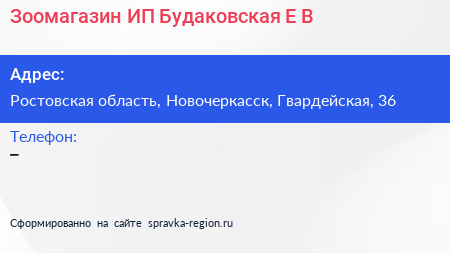 Зоомагазин, ИП Будаковская Е.В. по адресу Ростовская область, Новочеркасск, Гвардейская, 36 в дальнейшем Организация, размещена в следующих категориях: