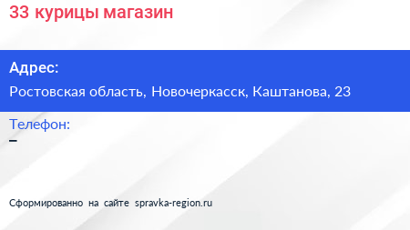 33 курицы, магазин по адресу Ростовская область, Новочеркасск, Каштанова, 23 в дальнейшем Организация, размещена в следующих категориях: