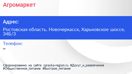 Агромаркет по адресу Ростовская область, Новочеркасск, Харьковское шоссе, 34Б/3 в дальнейшем Организация, размещена в следующих категориях: