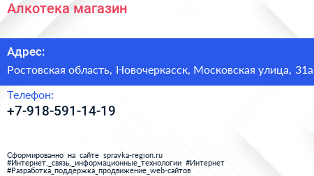 Алкотека, магазин по адресу Ростовская область, Новочеркасск, Московская улица, 31а в дальнейшем Организация, размещена в следующих категориях: