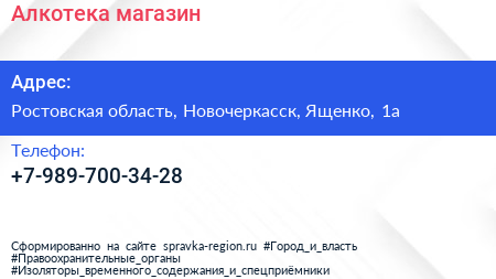 Алкотека, магазин по адресу Ростовская область, Новочеркасск, Ященко, 1а в дальнейшем Организация, размещена в следующих категориях: