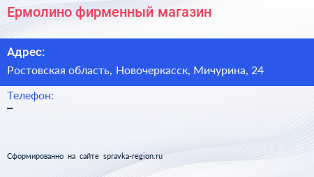 Ермолино, фирменный магазин по адресу Ростовская область, Новочеркасск, Мичурина, 24 в дальнейшем Организация, размещена в следующих категориях:
