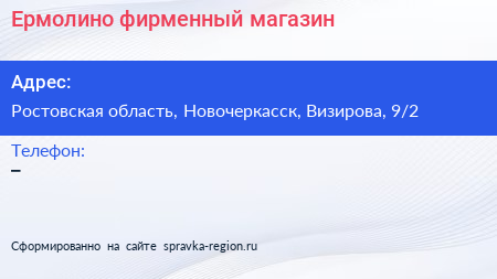 Ермолино, фирменный магазин по адресу Ростовская область, Новочеркасск, Визирова, 9/2 в дальнейшем Организация, размещена в следующих категориях: