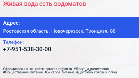 Живая вода, сеть водоматов по адресу Ростовская область, Новочеркасск, Троицкая, 88 в дальнейшем Организация, размещена в следующих категориях:
