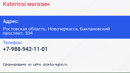 Katerinsi, магазин по адресу Ростовская область, Новочеркасск, Баклановский проспект, 104 в дальнейшем Организация, размещена в следующих категориях: