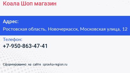 Коала Шоп, магазин по адресу Ростовская область, Новочеркасск, Московская улица, 12 в дальнейшем Организация, размещена в следующих категориях:
