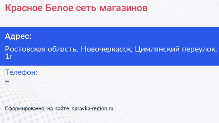Красное & Белое, сеть магазинов по адресу Ростовская область, Новочеркасск, Цимлянский переулок, 1г в дальнейшем Организация, размещена в следующих категориях:
