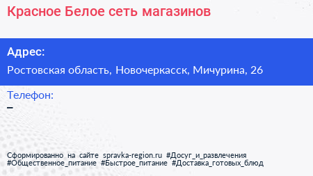 Красное & Белое, сеть магазинов по адресу Ростовская область, Новочеркасск, Мичурина, 26 в дальнейшем Организация, размещена в следующих категориях: