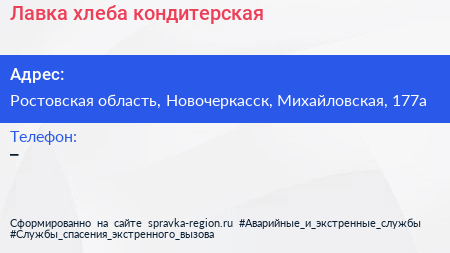 Лавка хлеба, кондитерская по адресу Ростовская область, Новочеркасск, Михайловская, 177а в дальнейшем Организация, размещена в следующих категориях: