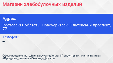 Магазин хлебобулочных изделий по адресу Ростовская область, Новочеркасск, Платовский проспект, 77 в дальнейшем Организация, размещена в следующих категориях: