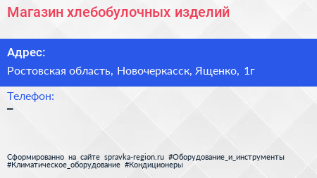 Магазин хлебобулочных изделий по адресу Ростовская область, Новочеркасск, Ященко, 1г в дальнейшем Организация, размещена в следующих категориях: