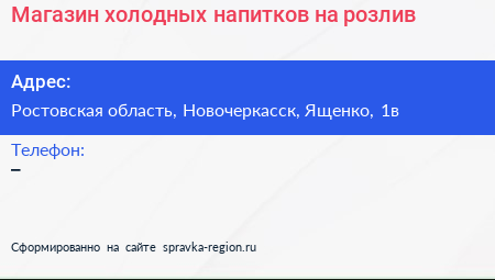 Магазин холодных напитков на розлив по адресу Ростовская область, Новочеркасск, Ященко, 1в в дальнейшем Организация, размещена в следующих категориях:
