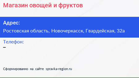 Магазин овощей и фруктов по адресу Ростовская область, Новочеркасск, Гвардейская, 32а в дальнейшем Организация, размещена в следующих категориях: