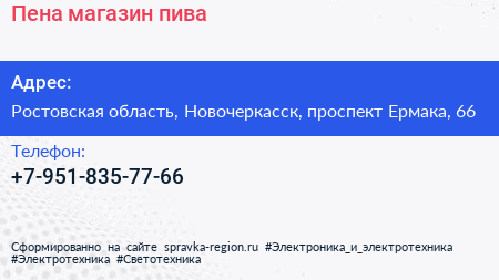 Пена, магазин пива по адресу Ростовская область, Новочеркасск, проспект Ермака, 66 в дальнейшем Организация, размещена в следующих категориях: