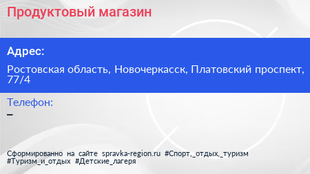 Продуктовый магазин по адресу Ростовская область, Новочеркасск, Платовский проспект, 77/4 в дальнейшем Организация, размещена в следующих категориях: