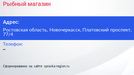 Рыбный магазин по адресу Ростовская область, Новочеркасск, Платовский проспект, 77/4 в дальнейшем Организация, размещена в следующих категориях: