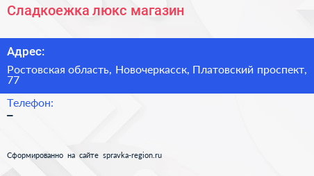 Сладкоежка-люкс, магазин по адресу Ростовская область, Новочеркасск, Платовский проспект, 77 в дальнейшем Организация, размещена в следующих категориях:
