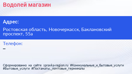 Водолей, магазин по адресу Ростовская область, Новочеркасск, Баклановский проспект, 55а в дальнейшем Организация, размещена в следующих категориях: