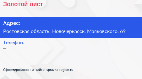 Золотой лист по адресу Ростовская область, Новочеркасск, Маяковского, 69 в дальнейшем Организация, размещена в следующих категориях: