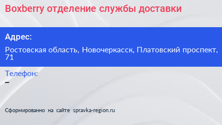 Boxberry, отделение службы доставки по адресу Ростовская область, Новочеркасск, Платовский проспект, 71 в дальнейшем Организация, размещена в следующих категориях:
