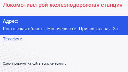 Локомотивстрой, железнодорожная станция по адресу Ростовская область, Новочеркасск, Привокзальная, 3а в дальнейшем Организация, размещена в следующих категориях: