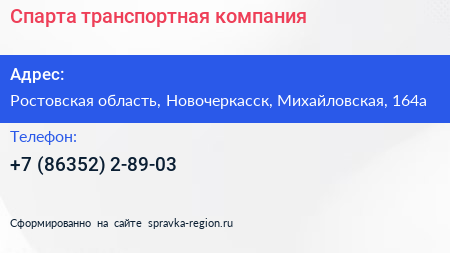 Спарта, транспортная компания по адресу Ростовская область, Новочеркасск, Михайловская, 164а в дальнейшем Организация, размещена в следующих категориях: