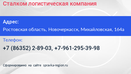 Сталком, логистическая компания по адресу Ростовская область, Новочеркасск, Михайловская, 164а в дальнейшем Организация, размещена в следующих категориях: