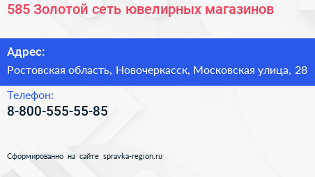 585 Золотой, сеть ювелирных магазинов по адресу Ростовская область, Новочеркасск, Московская улица, 28 в дальнейшем Организация, размещена в следующих категориях: