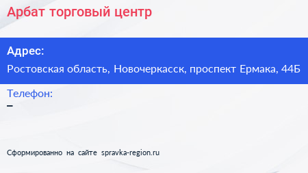Арбат, торговый центр по адресу Ростовская область, Новочеркасск, проспект Ермака, 44Б в дальнейшем Организация, размещена в следующих категориях: