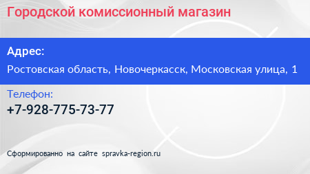 Городской, комиссионный магазин по адресу Ростовская область, Новочеркасск, Московская улица, 1 в дальнейшем Организация, размещена в следующих категориях: