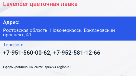 Lavender, цветочная лавка по адресу Ростовская область, Новочеркасск, Баклановский проспект, 41 в дальнейшем Организация, размещена в следующих категориях: