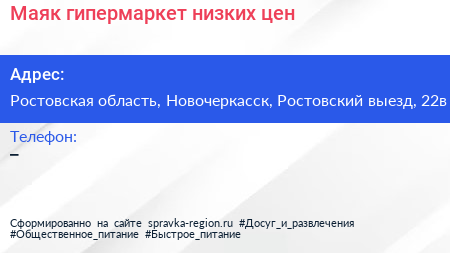 Маяк, гипермаркет низких цен по адресу Ростовская область, Новочеркасск, Ростовский выезд, 22в в дальнейшем Организация, размещена в следующих категориях: