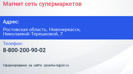 Магнит, сеть супермаркетов по адресу Ростовская область, Новочеркасск, Николаевой-Терешковой, 7 в дальнейшем Организация, размещена в следующих категориях: