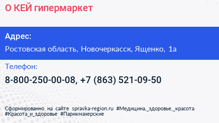 О`КЕЙ, гипермаркет по адресу Ростовская область, Новочеркасск, Ященко, 1а в дальнейшем Организация, размещена в следующих категориях: