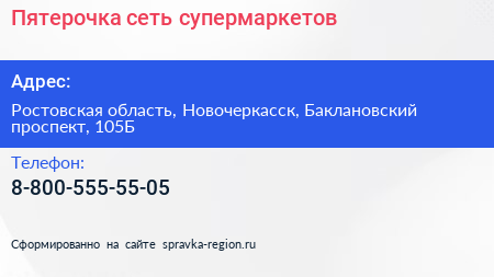 Пятерочка, сеть супермаркетов по адресу Ростовская область, Новочеркасск, Баклановский проспект, 105Б в дальнейшем Организация, размещена в следующих категориях: